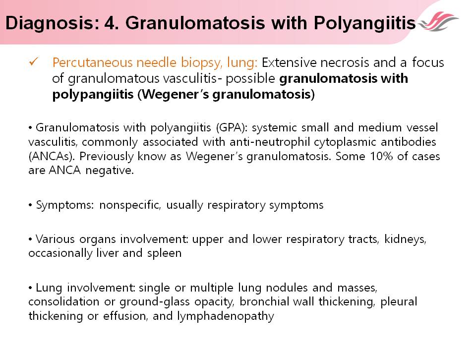 | Diagnosis | 4. Granulomatosis with polyangiitis | ||